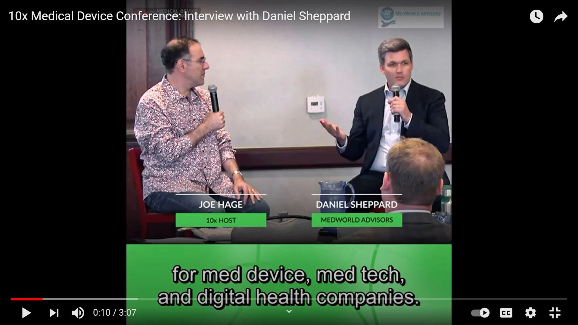 At the 10x Medical Device Conference, where the medical device ecosystem comes together to learn from and network with each other, host Joe Hage interviewed Managing Director Daniel Sheppard. Their conversation included what an ideal company looks like, how to prepare a company for a deal, developing commercialization strategies and more.